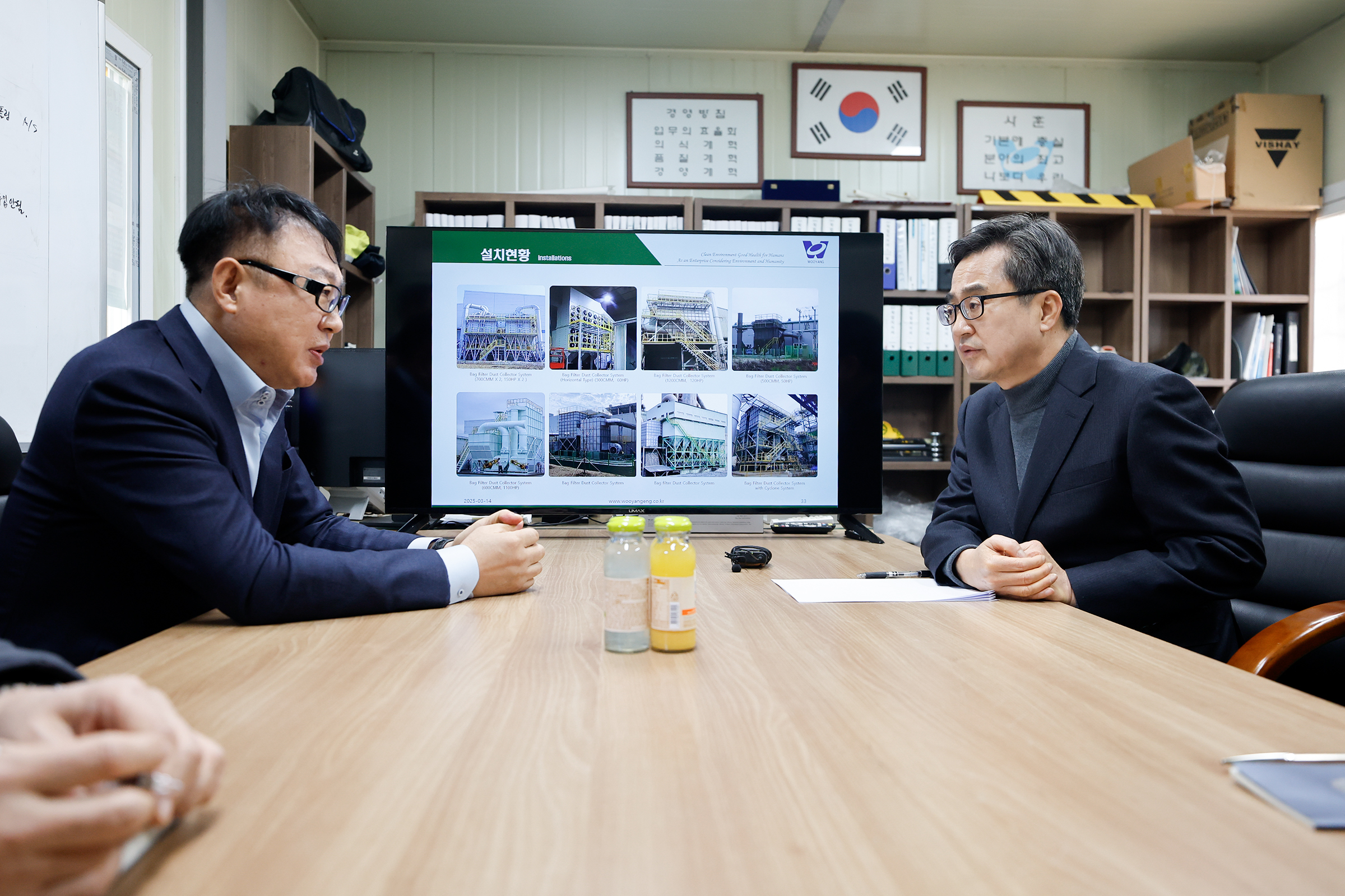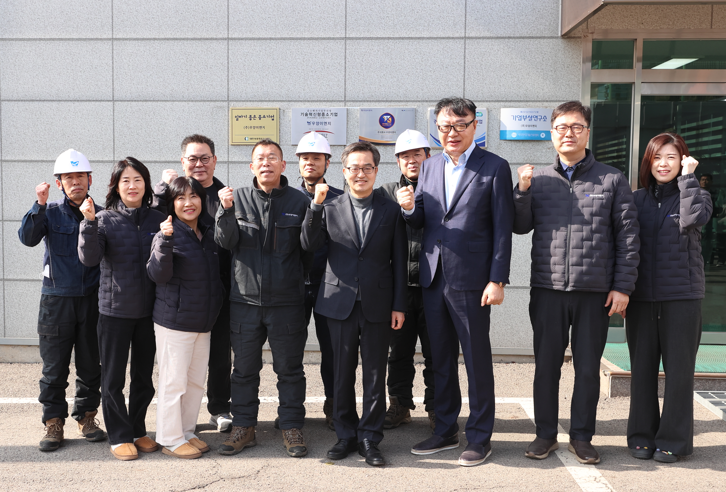 김동연 경기도지사는 14일 오전 화성시 남양읍 ㈜우양이엔지를 방문해 기술개발 현황과 적용사례 등을 점검했습니다.
