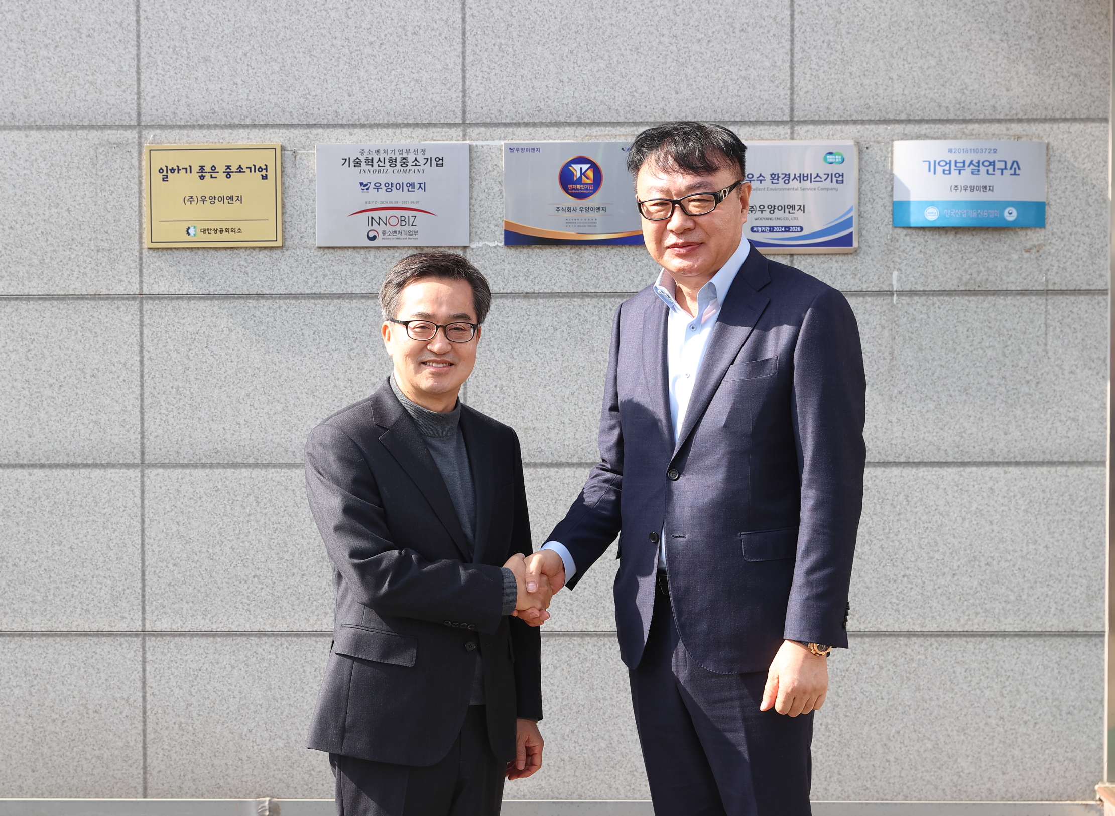 경기도 김동연도지사께서 저희 우양이엔지를 방문하셔, 미세먼지 저감을 위한 우양이엔지의 대기오염방지시설(집진기 등)의 제품제조 현황, 사업현황 및 환경산업 상황 등을 점검하시고, 환경업체가 필요로 하는 민원을 청취하셨습니다.